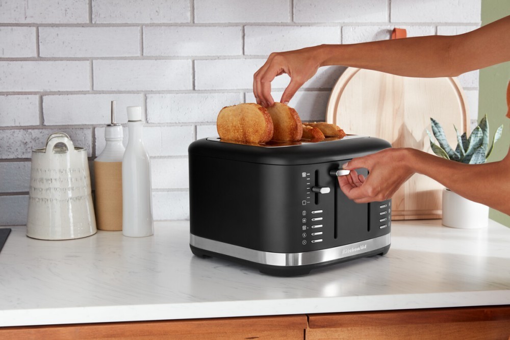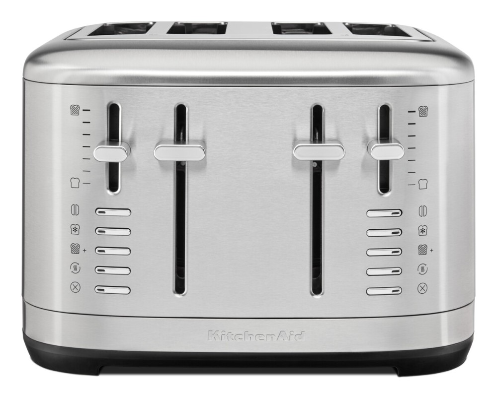 Tento KitchenAid topinkovač na 4 topinky má čtyři otvory, přičemž složen je ze dvou párů se dvěma oddělenými ovládáními. Dělá se ale i v menším provedení se dvěma otvory.