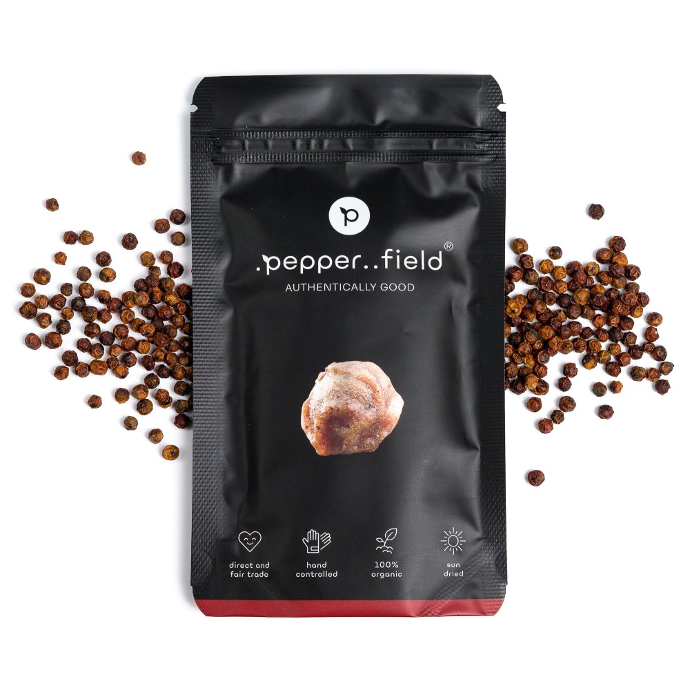 Kampotský pepř je dnes už známý po celém světě a není se čemu divit. Jeho unikátní a skvělá chuť je považována profesionálními kuchaři za tu nejlepší na světě. A když k tomu přidáte pečlivost a radost, s jakou ho firma Pepper field ve spolupráci s lokálními rodinnými farmami Kambodži pěstuje, sklízí a převáží k nám do České republiky, máte jeden skvělý a kvalitní produkt. Ke každému kvalitnímu jídlu je třeba i kvalitní koření, což u grilování platí obzvlášť. Proč se tedy omezovat běžným pepřem, když můžete Váš pokrm vyzdvihnout o úroveň výše tím nejlepším pepřem na světě?