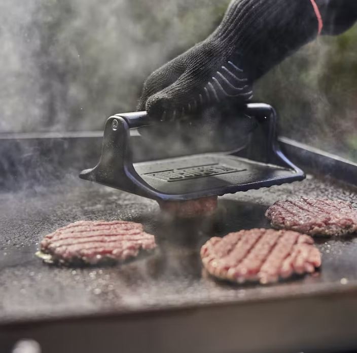 Ideálny nástroj na prípravu čoraz obľúbenejších smash hamburgerov, dokonale chrumkavých sendvičov, panini a quesadill alebo na grilovanie pekných, rovných plátkov slaniny. Môžete ho však použiť aj na vegetariánsku kuchyňu - je to najlepší spôsob, ako vytvoriť pekné a chrumkavé grilované huby všetkých druhov. Lis je navrhnutý tak, aby zabezpečil, že sa vaše grilované potraviny ugrilujú naozaj pekne po celej ploche planche, bez zvlnenia a bez vzduchových bublín. Pre nás je to takmer povinný doplnok ku každej planche alebo liatinovým grilom.