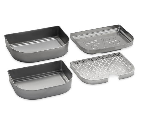 S touto multifunkčnou súpravou môžete taktiež pripravovať čerstvú zeleninu na pare alebo výmenou obidvoch polovíc liatinového grilu môžete pripravovať veľké ryby alebo dokonca celého homára. A to nie je všetko, vďaka sade dvoch ohrievacích podnosov môžete udržiavať jedlo pri správnej teplote niekoľko hodín - bez pripálenia alebo vysušenia. Ohrievacie misky sú vyrobené z nerezovej ocele, takže sa dajú ľahko umývať v umývačke riadu.