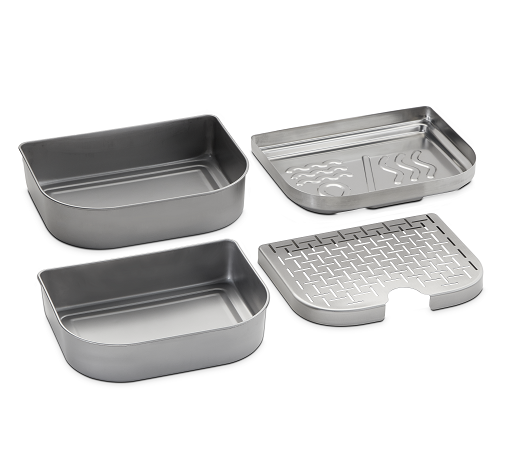 S touto multifunkčnou súpravou môžete taktiež pripravovať čerstvú zeleninu na pare alebo výmenou obidvoch polovíc liatinového grilu môžete pripravovať veľké ryby alebo dokonca celého homára. A to nie je všetko, vďaka sade dvoch ohrievacích podnosov môžete udržiavať jedlo pri správnej teplote niekoľko hodín - bez pripálenia alebo vysušenia. Ohrievacie misky sú vyrobené z nerezovej ocele, takže sa dajú ľahko umývať v umývačke riadu.