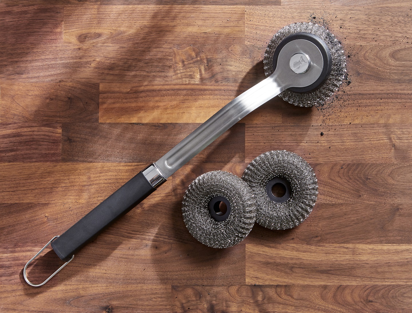 Madlo drátěnkového kartáče je vyrobeno z ergonomického duroplastu a je zakončeno očkem, díky kterému můžete kartáč zavěsit na háček u Vašeho grilu.