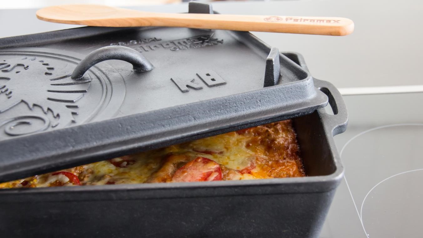 Hranatá verzia obľúbených kotlíkov Dutch Oven na pečenie čerstvého chleba, sladkého koláča alebo chrumkavej pečienky. Vďaka vyvýšenému okraju pokrievky je možné nasypať uhlíky/brikety aj na hornú stranu a teplo sa tak bude šíriť zo všetkých strán. Aj bez toho však dosiahnete výborné výsledky na otvorenom ohni, vonkajšej kuchyni alebo doma v rúre. Rovnako tak je možné veko vďaka zvýšenému okraju otočiť a použiť ako panvicu. Forma na pečenie je dostupná v dvoch veľkostiach.Petromax - kvalita a tradícia od roku 1910
