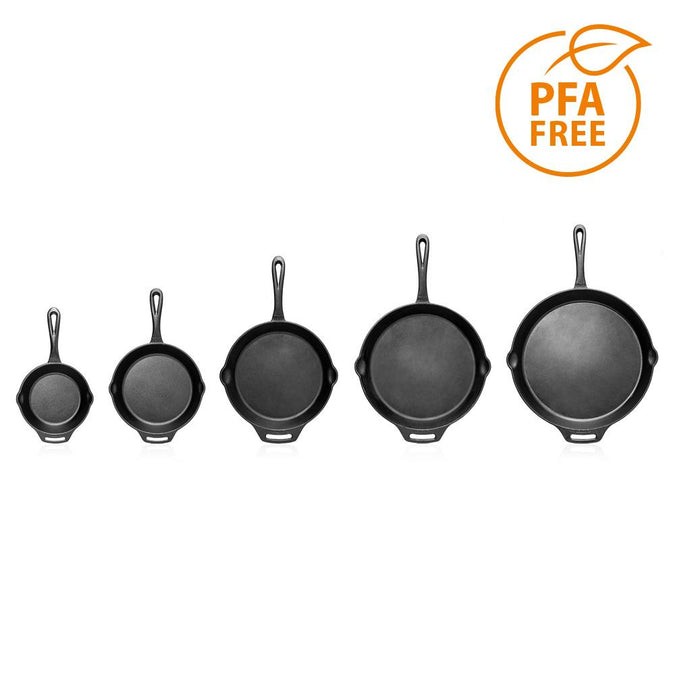 Jakmile jednou okusíte, stane se pro vás litinová pánev nepostradatelným vybavením. Díky svým mimořádně odolným vlastnostem jsou oblíbené v kuchyních profesionálů. Je dostupná v 5 velikostech a ve variantě se dvěma úchyty nebo jednou rukojetí, abyste mohli vybrat to správné vybavení přesně podle vašich potřeb. Rozměr pánve v názvu odpovídá průměru spodní styčné plochy.Pánev je naprosto univerzální – je vhodná na elektrickou desku i indukci, na plynový sporák, do trouby, ale i na všechna venkovní ohniště, plotny anebo vhodný gril. Ať už vaříte kdekoliv, pokrm z litinové pánve bude vždy zážitkem.