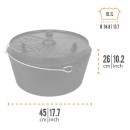 Díky speciální poklici se zvýšeným okrajem můžete uhlíky položit i na horní stranu hrnce. Dosáhnete tak dokonalého vedení tepla a hrnec je pak vhodný i například na pečení chleba. V poklici dále najdete zdířku na měření teploty. A snad největší vychytávkou je, že obrácenou poklici můžete využít jako pánev. Jedná se tak o vysoce kvalitní Petromax kotlík na oheň.