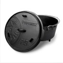 Díky speciální poklici se zvýšeným okrajem můžete uhlíky položit i na horní stranu hrnce. Dosáhnete tak dokonalého vedení tepla a hrnec je pak vhodný i například na pečení chleba. V poklici dále najdete zdířku na měření teploty. A snad největší vychytávkou je, že obrácenou poklici můžete využít jako pánev. Jedná se tak o vysoce kvalitní Petromax kotlík na oheň.