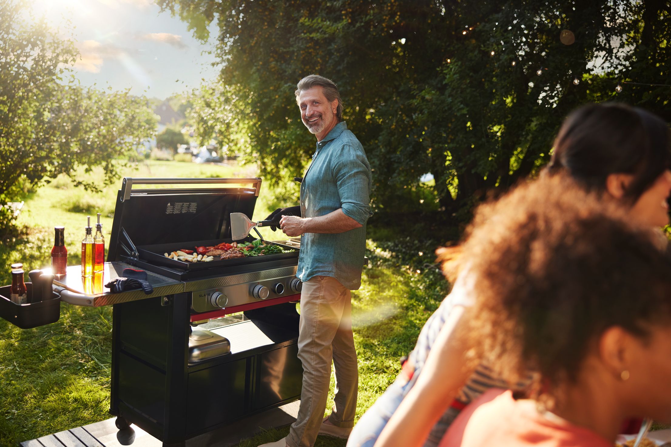 Tento veľký griddle je ideálny na väčšiu grilovaciu hostinu alebo aj do gastra, jednoducho na obslúženie veľkého počtu hostí. Jadro grilu s liatinovou doskou je posadené v robustnom vozíku, ktorý grilovaciu plochu umiestni do ideálnej pracovnej výšky a ktorý je postavený na 2 kolieskach, takže ho môžete vonku ľahko presúvať.Pod grilom nájdete veľkorysý úložný priestor na vaše grilovacie vybavenie a dva pracovné stoly po stranách - jeden z nich je sklopný a druhý je kompatibilný so systémom príslušenstva Weber Works. To znamená, že na poličku môžete pripevniť háčiky na náčinie, svetlo alebo držiak na nápoje, olej či korenie. Časť dosky môžete tiež nahradiť doskou na krájanie alebo košom na zvyšky. Vďaka tejto praktickej pomôcke bude príprava jedla v záhrade na čerstvom vzduchu oveľa príjemnejšia. Mnohé veci, ktoré by ste predtým robili v kuchyni, môžete dobre robiť aj vonku.