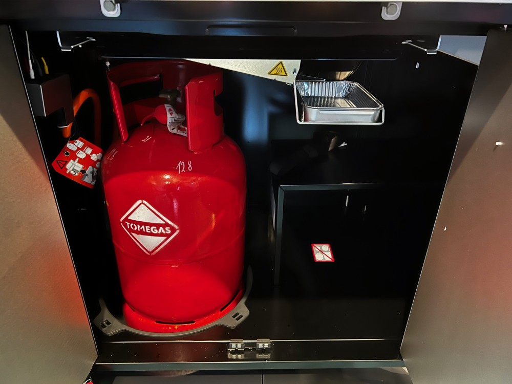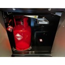 - Luxusní, uzavřený design vozíku s místem pro plynovou láhev (i na 11 kg ocelovou láhev, ale doporučujeme spíš 10 kg láhve)