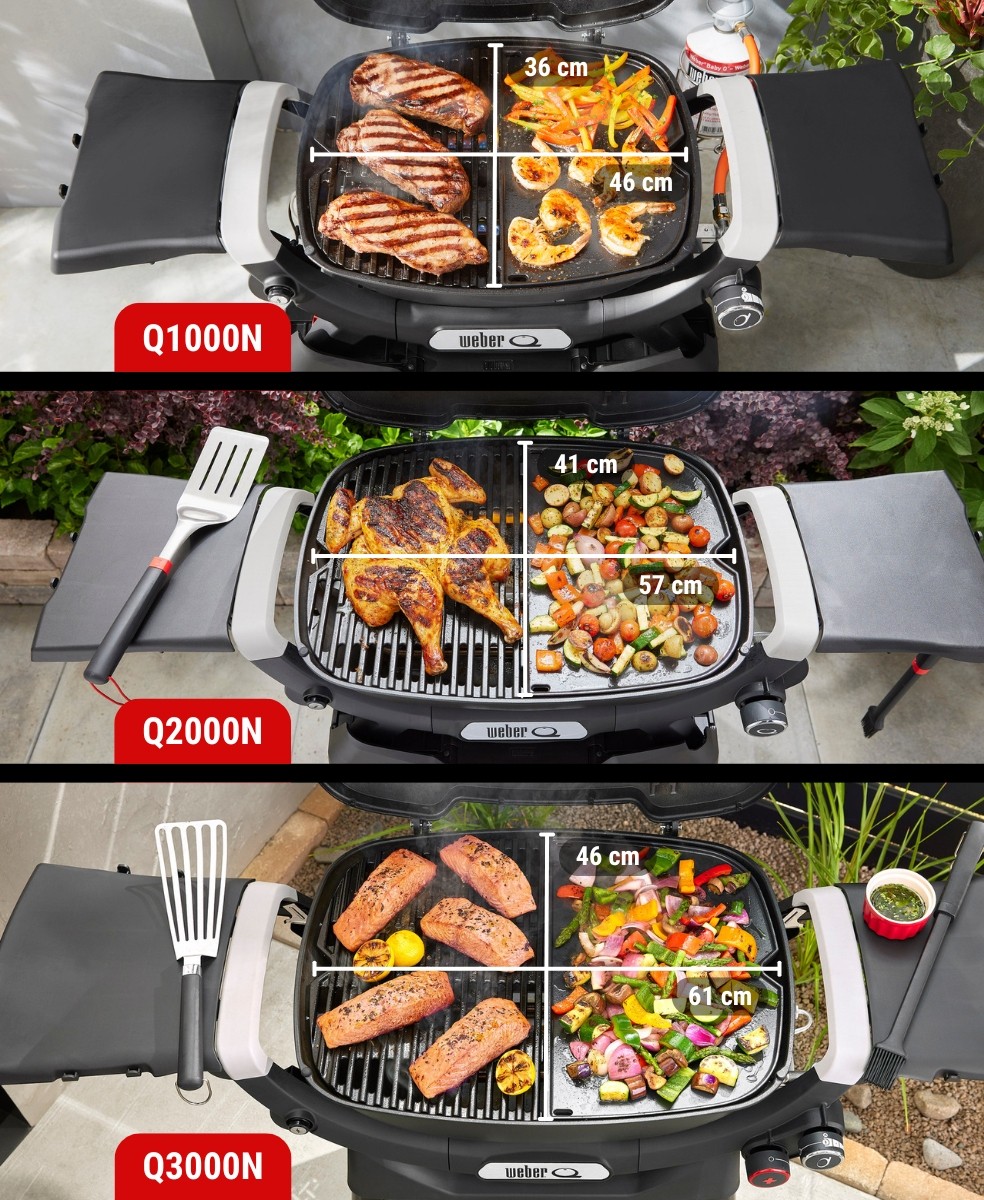 Všetky tieto novšie modely majú označenie Weber QxxxN - dosaďte ľubovoľné číslo, dôležité je to N (New) za ním :) Jedná sa teraz o plnohodnotné záhradné grily, ktoré zvládnu ako priame grilovanie na vysoké teploty, tak nepriame grilovanie veľkých kusov mäsa.