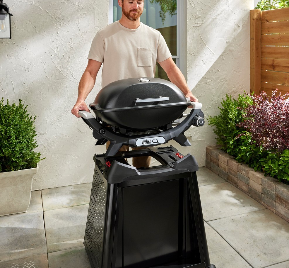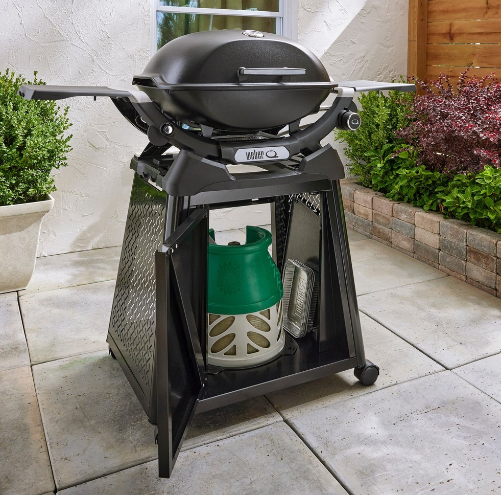 Stojan Premium grilu Weber Q2200N je okrem všetkej štandardnej výbavy tohto radu vybavený vysoko stabilným vozíkom. Ten zabezpečuje optimálnu pracovnú výšku grilu a navyše stojí na 4 otočných kolieskach pre jednoduchú prepravu. Na prednej strane vozíka sa nachádzajú dvierka na rýchly prístup dovnútra. A čo je najlepšie, do vnútra spodnej skrinky sa zmestí aj plynová fľaša, a to až do veľkosti 10 kg oceľovej fľaše.