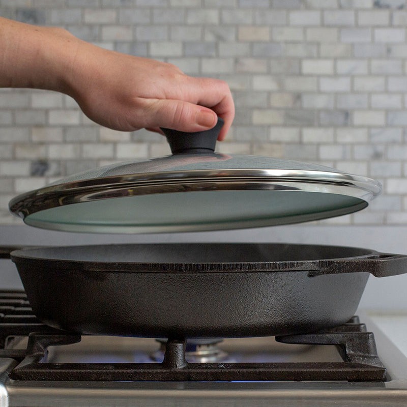 Lodge pokrievka ideálna pre liatinové panvice a hrnce Lodge. Vyrobená je z tvrdeného skla, iba úchytka je umelohmotná.