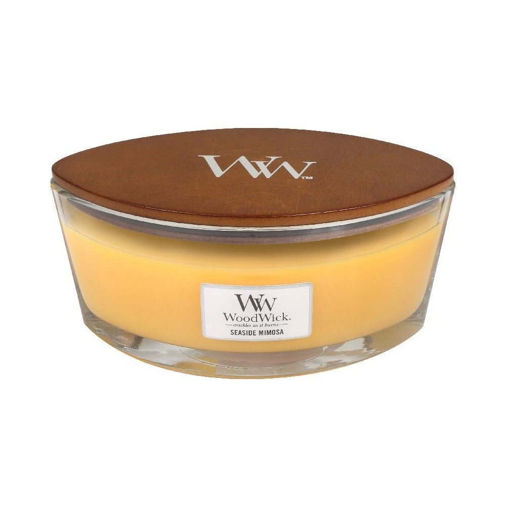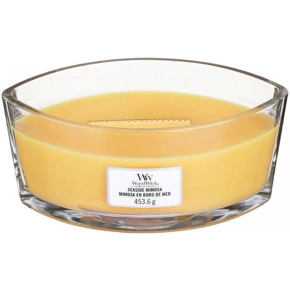 WoodWick Loď - Seaside Mimosa je sladká vůně šťavnatého citrusu s tónem šampaňských hroznů, která vás přenese na letní pobřeží a osvěží Vás jako chladivá mimosa.