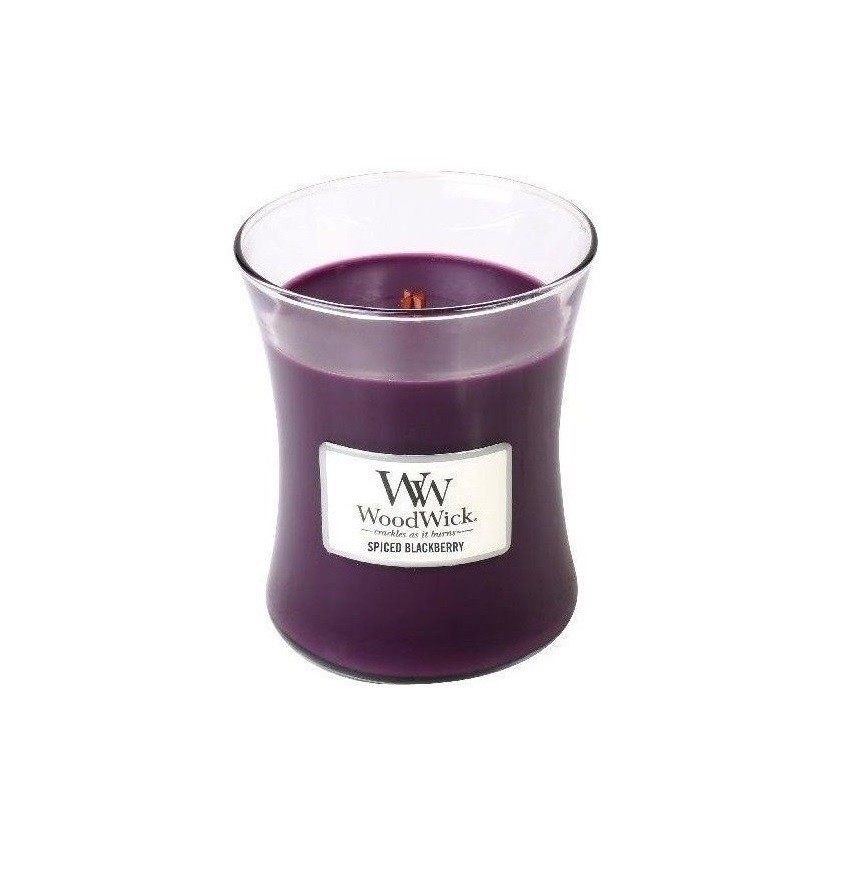 S luxusními svíčkami WoodWick doma zajistíte příjemnou vůni a díky jemně praskajícímu dřevěnému knotu také jedinečnou atmosféru hořícího ohně.Přednosti značky WoodWickVonná svíčka WoodWick malá - Spiced Blackberry